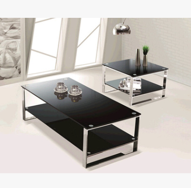 兆星現(xiàn)代簡約不銹鋼鋼化玻璃雙層茶幾客廳辦公室黑色玻璃茶幾