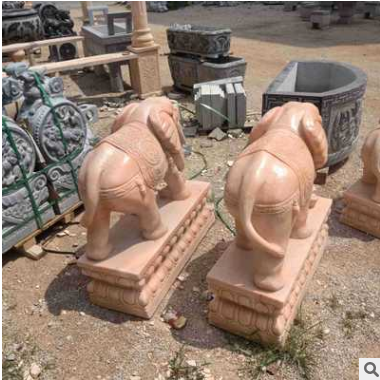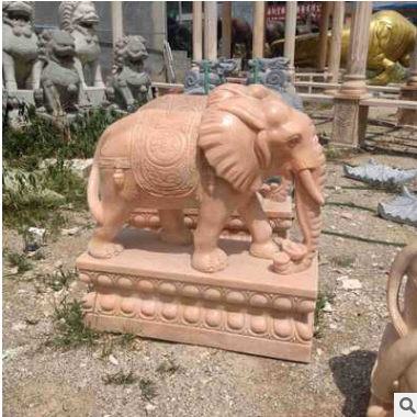 大理石晚霞紅石雕大象小象