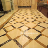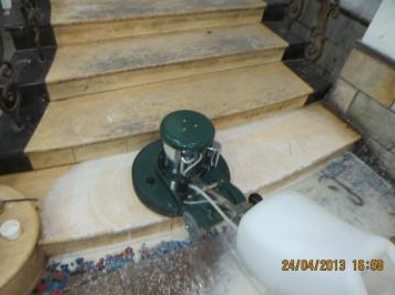 當(dāng)石材表面出現(xiàn)孔洞、風(fēng)化、嚴(yán)重腐蝕,完全失去光澤并有深度劃傷,可采用深度翻新工序進(jìn)行翻新處理。翻新前,先要將孔洞進(jìn)行修補(bǔ),方法如下:先將孔洞內(nèi)的污物清洗干凈,再晾干石材,根據(jù)原石材的顏色和反光特性采用進(jìn)口的環(huán)氧樹(shù)脂膠或不飽和樹(shù)脂膠,經(jīng)調(diào)色后再進(jìn)行修補(bǔ),使用加重機(jī)、配翻新盤(pán)和50#、150#、200#、400#、800#、1500#、3000#拋光片金鋼石水磨片進(jìn)行逐一的打磨。打磨方法、注意事項(xiàng)與輕度翻新一致。如使用大理石晶硬粉進(jìn)行石材晶硬處理,在翻新過(guò)程中,經(jīng)800#金鋼石水磨片研磨后,可直接使用大理石晶硬粉進(jìn)行晶硬處理,處理后的石材表面光亮如新
