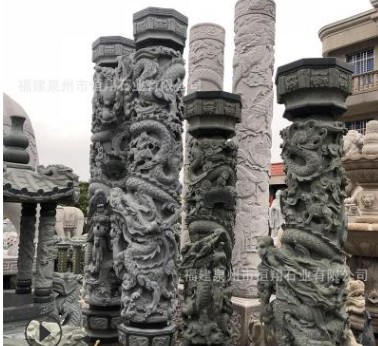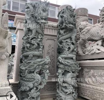 廠家供應青石香爐 祠堂寺廟青石龍柱雕刻 雙龍石頭圓柱定制