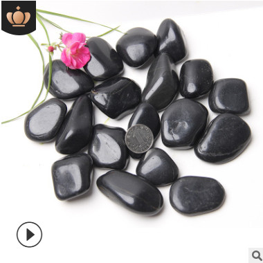 » 黑色拋光鵝卵石 廠家直銷鋪路園林雨花石 天然黑色裝飾造景石頭