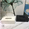 » 天然大理石紙巾盒白色黑色長方形盒子擺件樣板房酒店會所飾品擺設