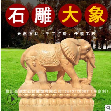 » 石雕晚霞紅大象一對(duì)大理石風(fēng)水象酒店庭院門口漢白玉石象招財(cái)擺件