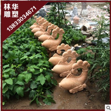» 晚霞紅石雕噴水魚 富貴招財(cái)歐式石雕魚庭院石頭魚流水?dāng)[件廠家定