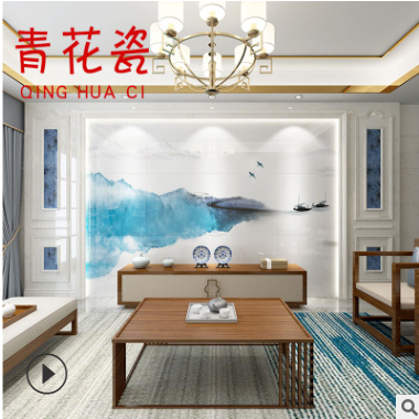 » 瓷磚背景墻3d微晶石客廳山水藝術(shù)墻新中式電視背景墻瓷磚湖舟墨影