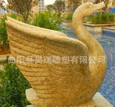 » 供應現(xiàn)貨黃銹石噴水天鵝 水景小品 園林景觀雕塑 玻璃鋼雕塑
