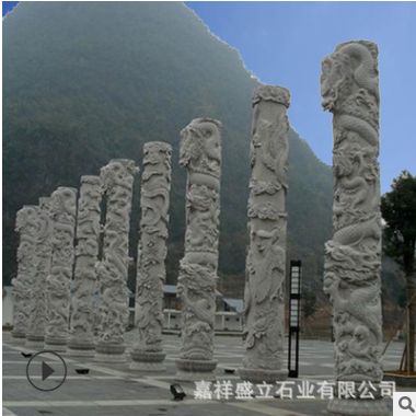 大理石盤龍柱子浮雕廠家 石材龍柱價格 文化柱華表柱雕刻圖片