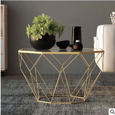 北歐簡(jiǎn)約小戶型鋼化玻璃圓形茶幾現(xiàn)代簡(jiǎn)易鐵藝茶座迷你ins小桌子