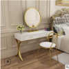 北歐實木梳妝臺 ins風(fēng)女生臥室化妝桌創(chuàng)意金色鐵藝帶抽屜化妝臺