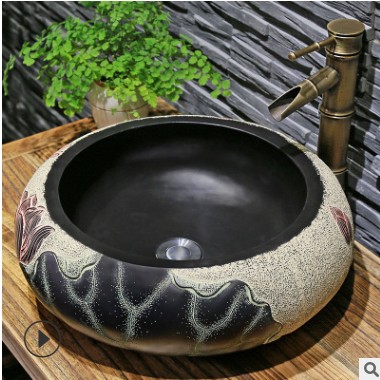 中式臺(tái)上盆洗手盆簡(jiǎn)約圓形洗漱臺(tái)盆家用衛(wèi)生間創(chuàng)意藝術(shù)洗臉盆面盆